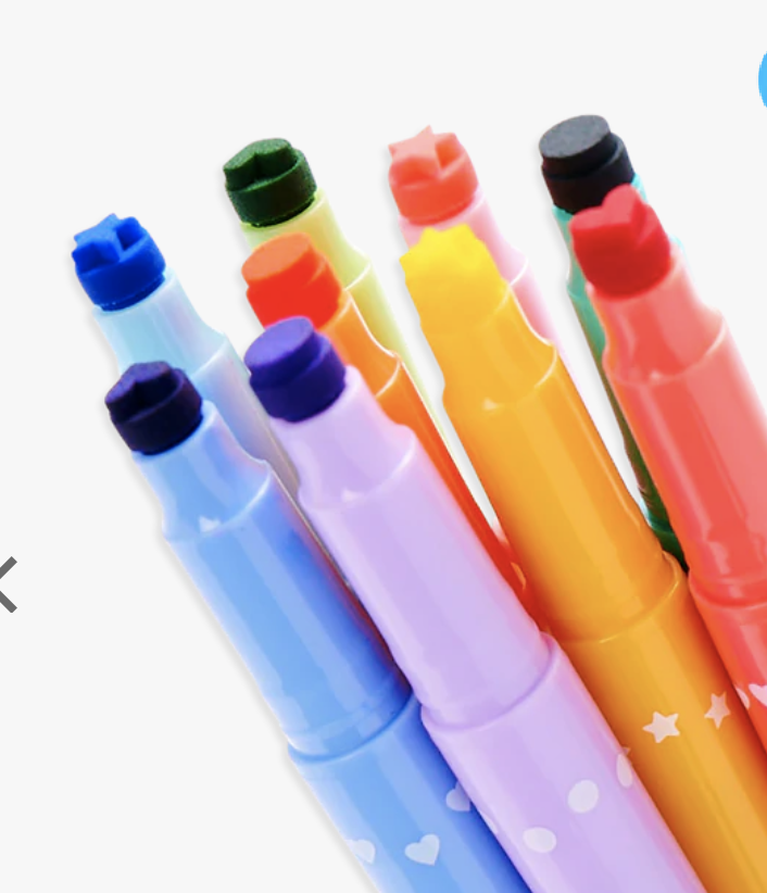 Get out the confetti and celebrate your fun side with this set of Confetti Stamp Double-Ended Markers. These adorable markers let you draw, color and stamp your way to fun. Draw with the fine tip felt marker, then flip it over to stamp sweet confetti shaped dots, hearts, and stars.
